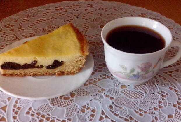 Поверх чернослива налить подготовленную сметано-творожную смесь;